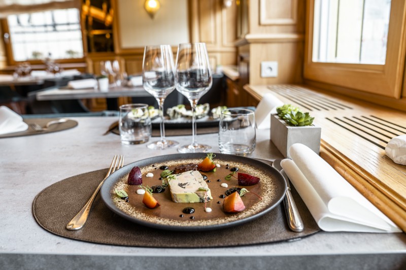 Foie gras de canard au pinot noir d’Alsace, laquage cannelle, kougelhopf façon pain perdu et chutney hivernal