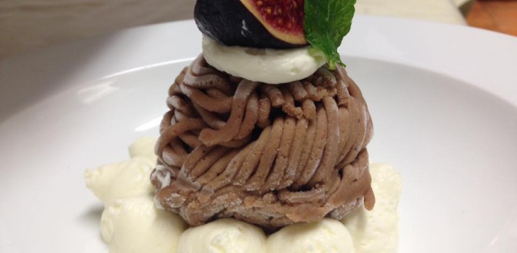 Entremet à la truffe de fin d’année, insert chocolat et fève de Tonka, déclinaison de truffe en texture, glace Tonka