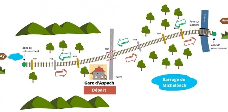 Au départ de la gare d' Aspach, entre les villages d'Aspach/Michelbach et d' Aspach le bas,