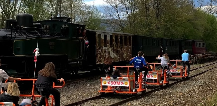 Nous l'empruntons désormais à bord de vélorails.